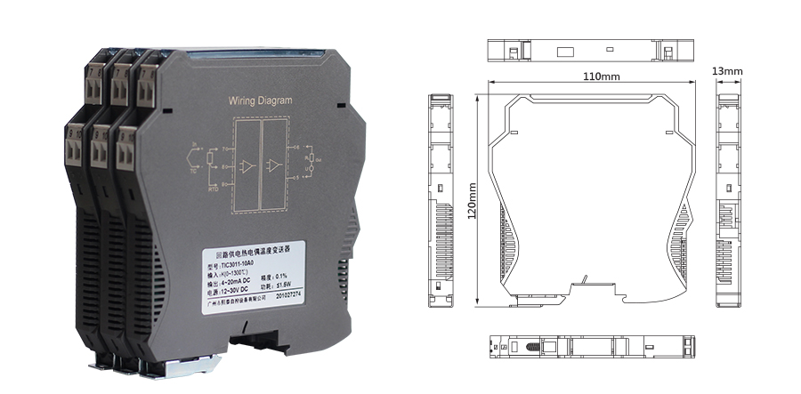 TIC3011将热电偶温度传感器信号转换成 DC4~20mA电流信号。输入和输出之间相互隔离,增强控制系统抗干扰能力。回路供电。